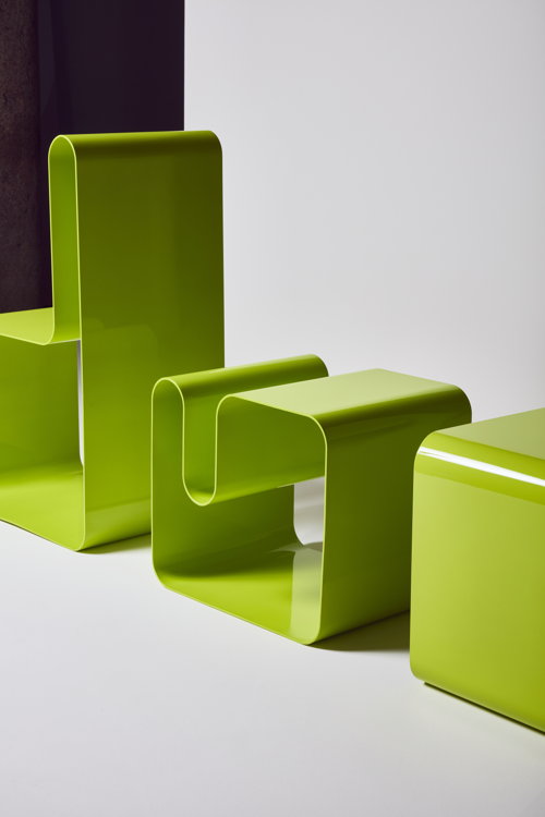 Challenging the trend of complex design, artist and designer David Lee’s Monolith chair and table are fashioned from a single piece of material that is laser-cut and bent into its final form. The design marks an unusual return to conventional production and manufacturing methods, which in turn minimises waste, human labour and material consumption. This departure from the norm not only addresses environmental concerns but also challenges the status quo of resource-intensive manufacturing practices.